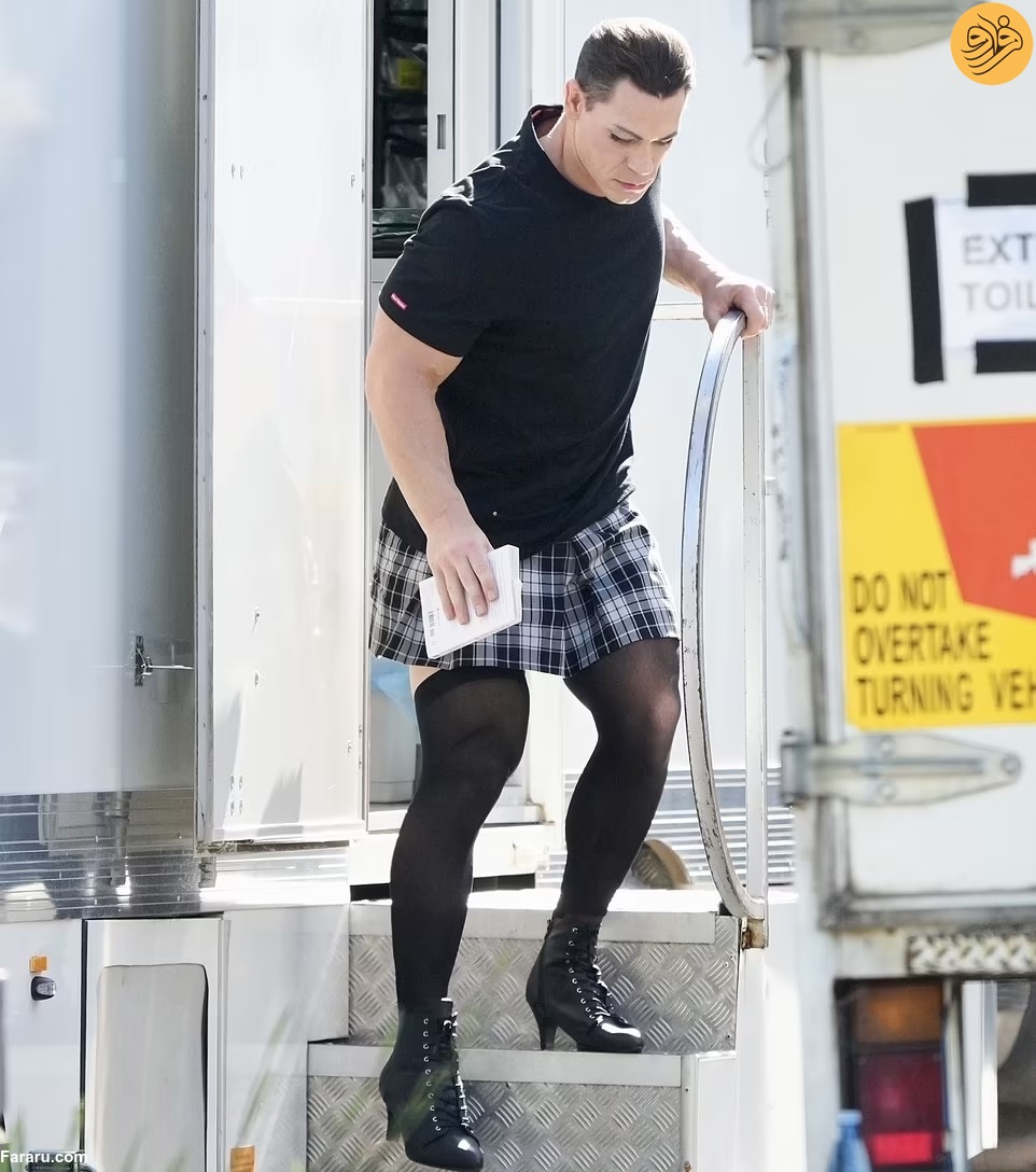 به گزارش وقت صبح به نقل از فرارو، جان سینا بازیگر ۴۵ ساله با پوشیدن جوراب بلند زنانه و یک دامن کوتاه چهارخانه و یک جفت چکمه پاشنه بلند در فیلمبرداری پروژه جدید خود با عنوان ریکی استانیکی در ملبورن استرالیا دیده شد.