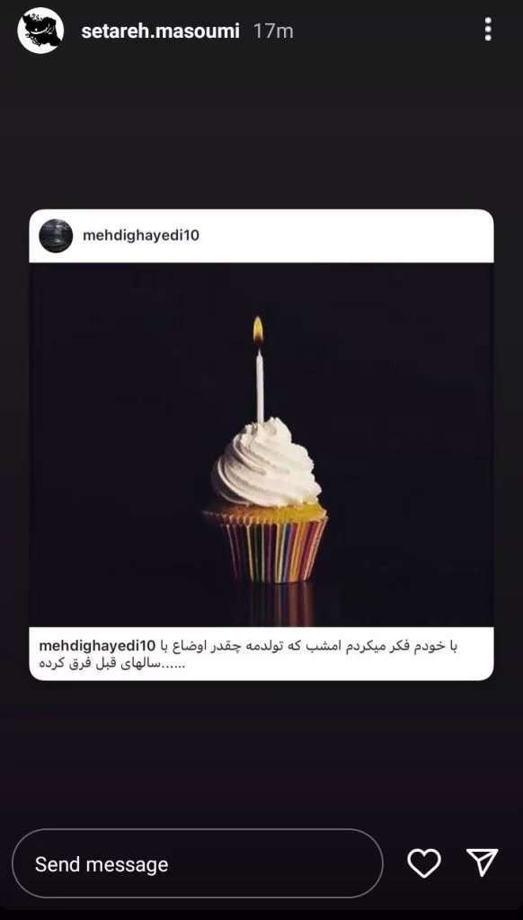 مدتی قبل ستاره معصومی همسر مهدی قائدی مهاجم تیم استقلال با انتشار یک استوری در صفحه اینستاگرام اش به تولد همسرش واکنش عجیبی بروز داده است.