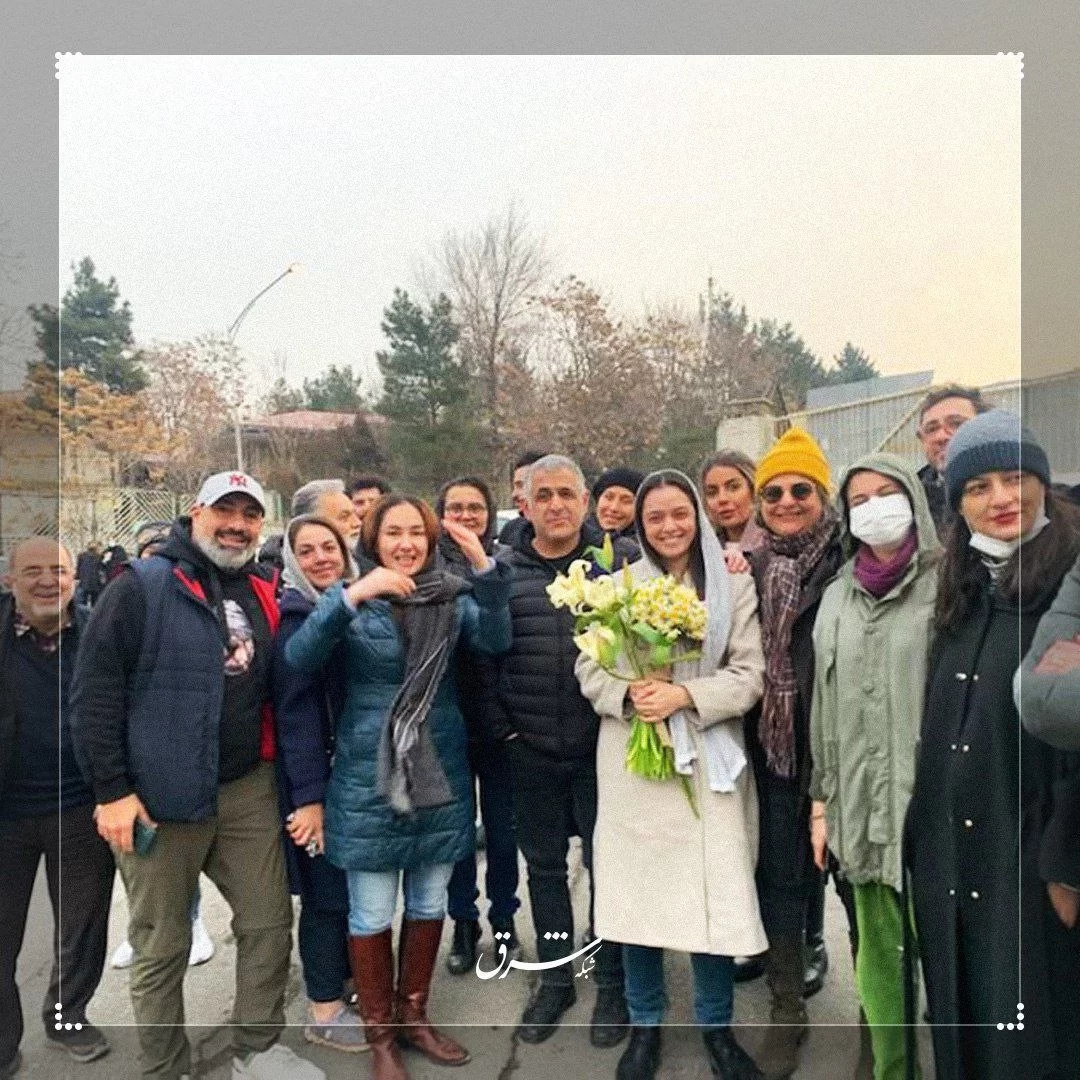 چند تن از هنرمندان در مقابل زندان اوین به استقبال او آمده بودند.