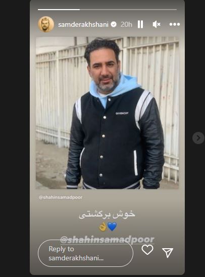 او اکنون در صفحه اینستاگرام اش یک استوری برای استقبال از آزادی شاهین صمدپور منتشر کرده و نوشته است: خوش برگشتی.