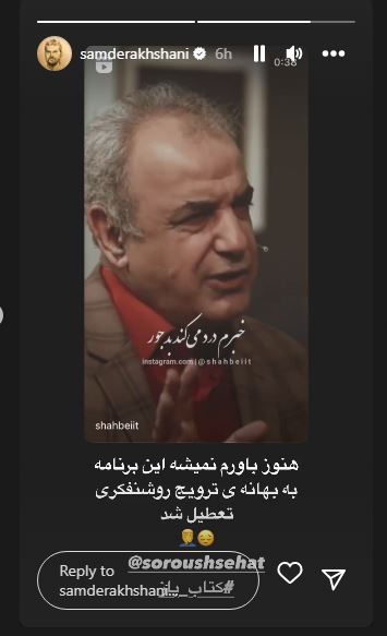 او در این رابطه نوشت: «هنوزم باورم نمیشه این برنامه به بهانه ی ترویج روشنفکری تعطیل شد.»