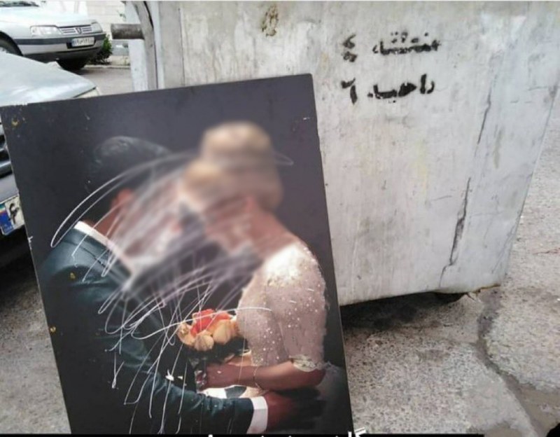 تصویری از یک عکس عاشقانه عروس و داماد در کنار سطل زباله که خبر از جدایی شان می دهد منتشر شد.