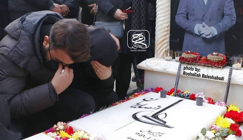 خواهر علی انصاریان و داماد خانواده حامد اژدری بر سر مزار زنده یاد علی انصاریان حاضر شدند.