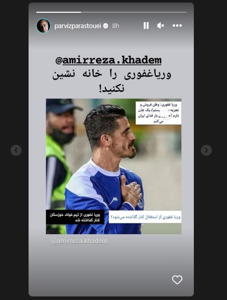 در این میان هم پرویز پرستویی با انتشار یک استوری خواسته تا وریا غفوری را خانه نشین نکنند و او را برگردانند.